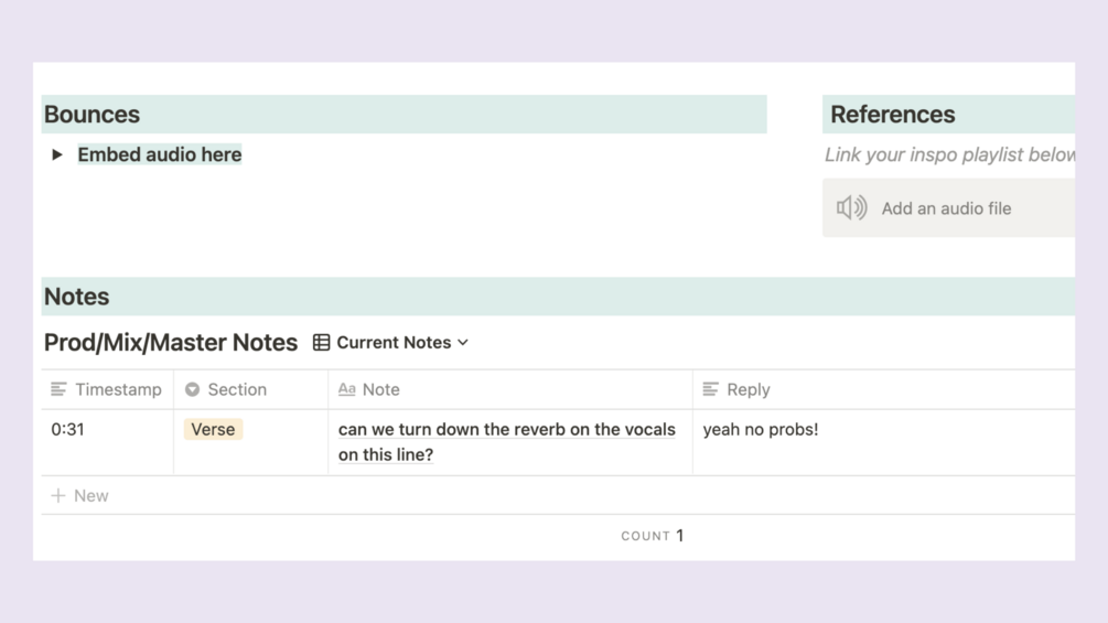 - a place to jot down quick lyric ideas, that will show up as inspo every time you work on a song
